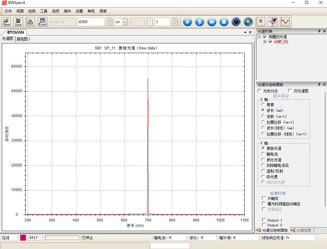 單色儀設(shè)置700nm 波長(zhǎng)曲線